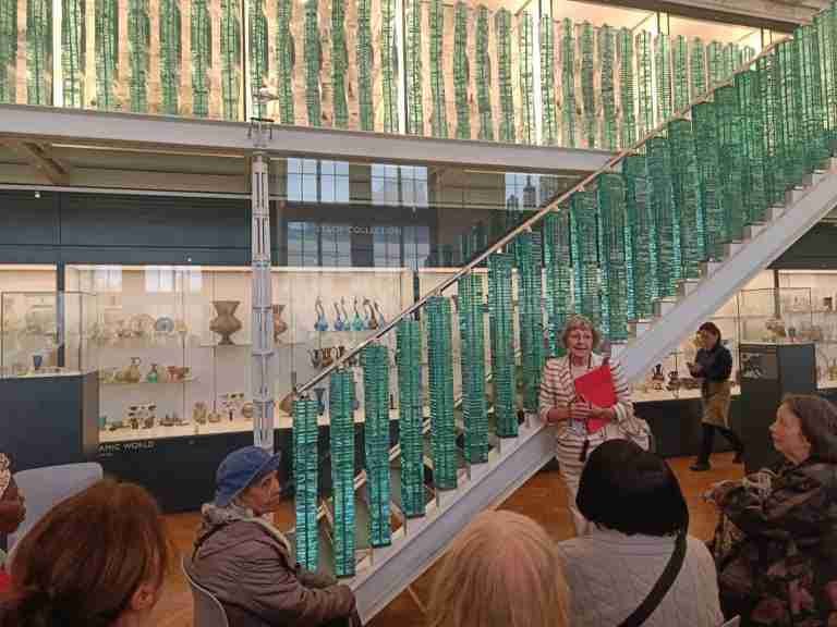 Spanning over 3,500 years of craftsmanship, the collection showcases the evolution of glass design and technology. Among the many dazzling displays, one standout feature captivated the group—a breathtaking staircase crafted entirely from glass by artist Danny Lane, whose studio is based in Willesden. This unexpected local connection sparked lively discussion and appreciation for both global artistry and homegrown talent.